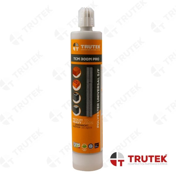 El anclaje químico TCM M PRO es una resina de poliéster sin estireno diseñada para anclar cargas medias a pesadas en diversos sustratos, como hormigón, ladrillo y piedra.